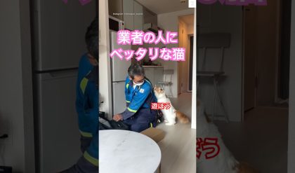 業者さんにベッタリな猫😂※この後すぐにどかしました #猫 #かわいい猫 #猫のいる暮らし #面白い #癒し