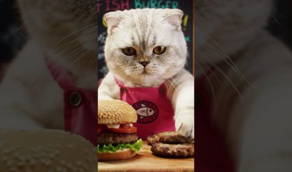 作り方が破天荒‼︎🍔直接手づかみ⁉ 猫がハンバーガー作ったらこうなった【Funny cat making a hamburger】#猫 #Shorts