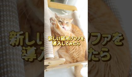 新しい猫用ソファ導入してみたら可愛すぎた💕#猫のいる暮らし #可愛い #ペット用品 #猫動画 #cat #猫おもしろ #茶トラ猫 #ハチワレ猫 #猫好きさんと繋がりたい #癒し動画 #しぬしぬ界隈